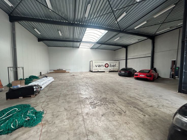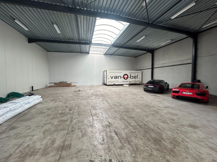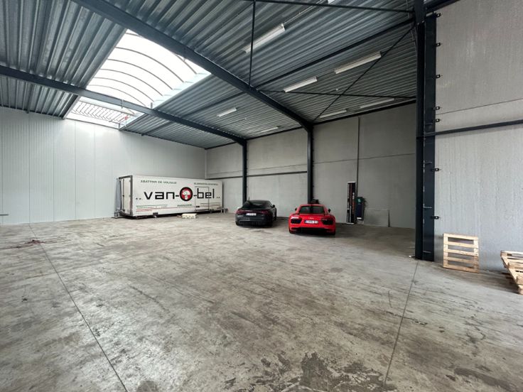 Magazijn is opgebouwd uit een stalen structuur met gevels in silexbeton-sandwishpanelen, de vrije hoogte is circa 6,5 meter, dak in geïsoleerde steeldeck, automatische sectionaalpoort, LED verlichting, centrale lichtstraat, polybetonvloer, drijfkracht aanwezig, afvoer sanitair is aanwezig, 5 parkings inclusief. Gemeenschappelijke kost van 100 €/maand. Onmiddellijk beschikbaar.