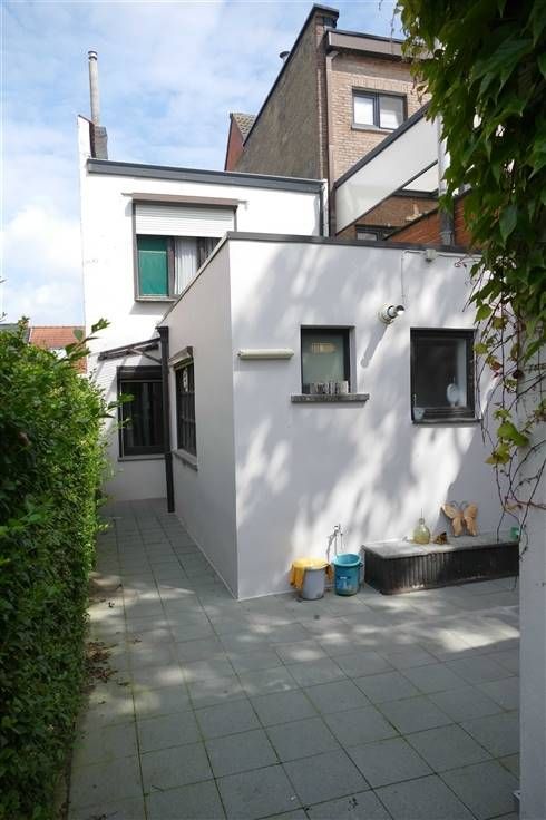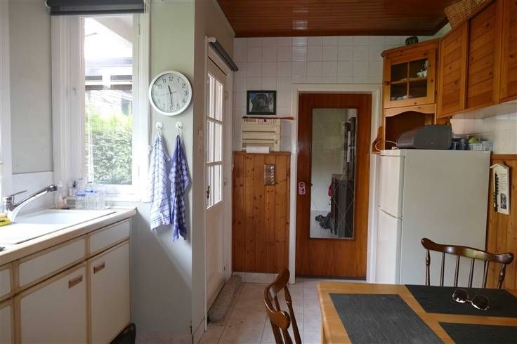 Charmante woning met leuke tuin. De inkomhal, die ideaal is van grootte, is verbonden met de garage en de leefruimte. De trap naar de verdieping vertrekt er achter de garagemuur zodat hij niet meteen zichtbaar is voor de deur-aan-deur verkopers die aanbellen. De leefruimte heeft een onderhoudsvriendelijke tegelvloer en is verbonden met de keuken. De keuken heeft veel lichtinval, biedt voldoende plaats voor een eethoek en geeft toegang tot de tuin. De badkamer is eerder klein naar hedendaagse normen, maar heeft desondanks een douche, lavabo en toilet. Deze uitbreiden is mogelijk. Op de verdieping zijn er 2 grote kamers met hoge plafonds en een zeer ruime hal waarin een derde kamer of bureau of studeerkamer kan gemaakt worden. De inpandige garage heeft een hoge, elektrisch bediende poort. De tuin is omheind en via een overweg op het naburig perceel kan je tuin- en snoeiafval gemakkelijk wegvoeren. In de tuin staat een berging en het overdekt terras is gezellig. Bezichtigingen op afspraak: 03 / 779 69 29 Eberhard van HUSCH vastgoed