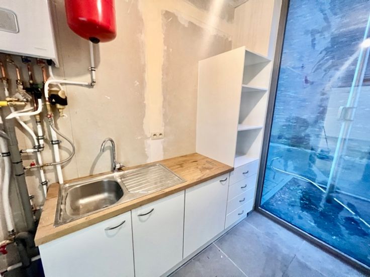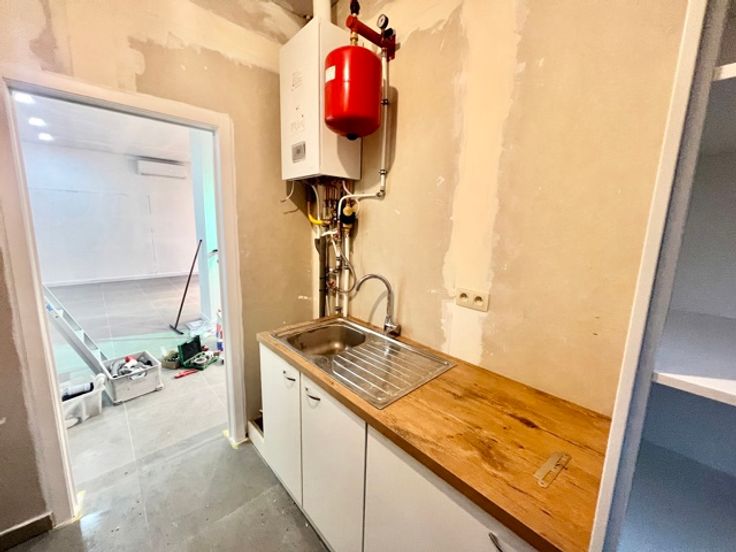Bij het binnenkomen is er onmiddellijk een grote ruimte aanwezig die doorloopt naar achtergelegen keukenruimte met sanitair.