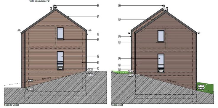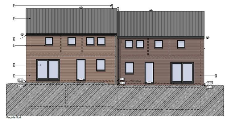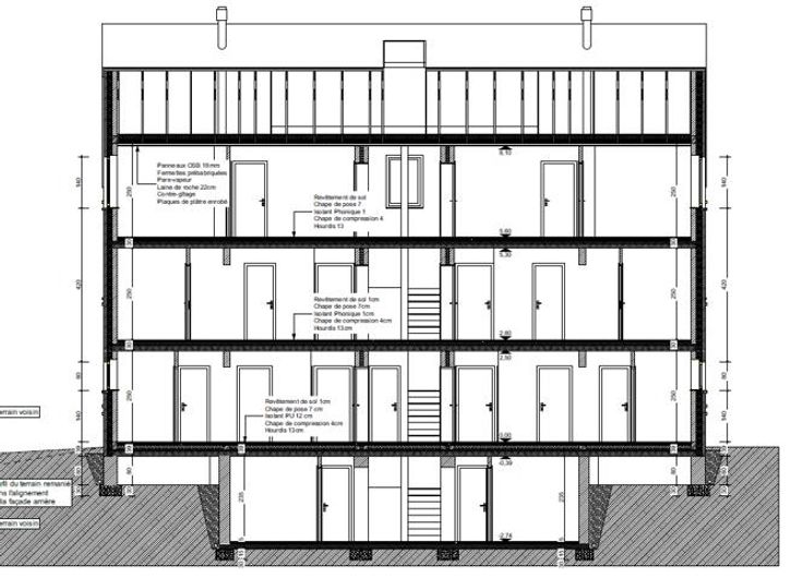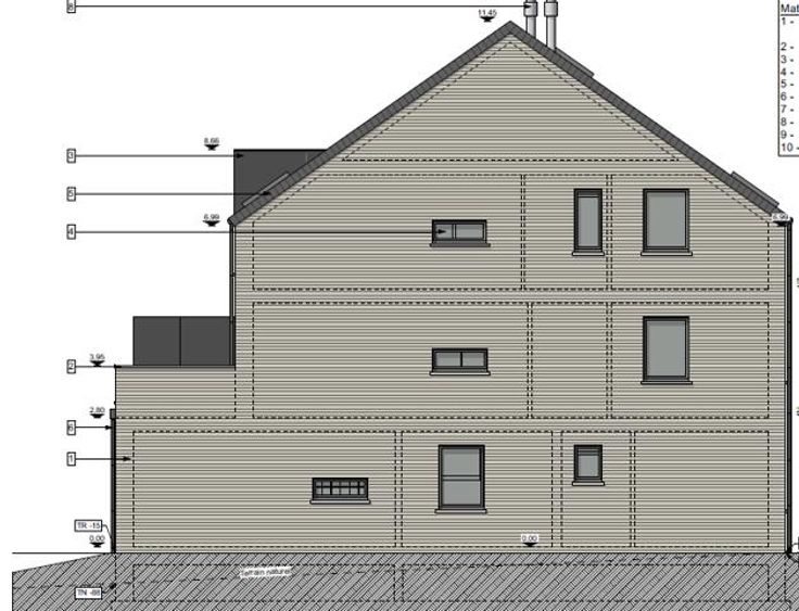 Projet (1) : Construction de 2 maisons jumelées/mitoyennes en contre bas du terrain, afin d'éviter le vis-à-vis avec l'immeuble.