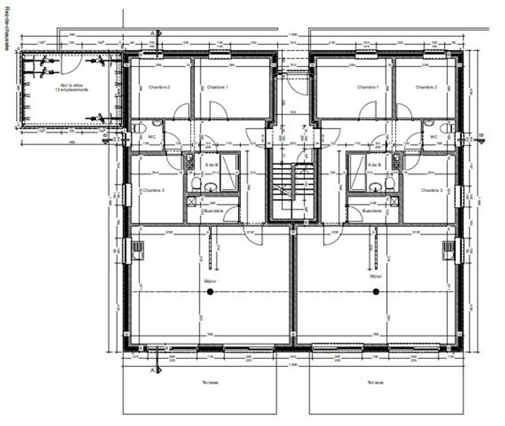 RDC : 2 appartements accès PMR 3 chambres, terrasse, place de parking.