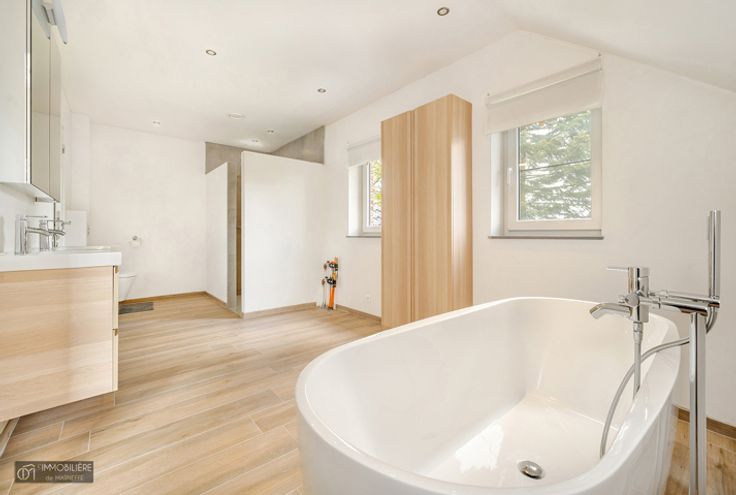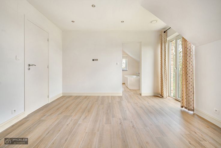 Op de 1e: 4 mooie slaapkamers van respectievelijk 30, 17, 15 en 14m², grote badkamer van 17m² met Italiaanse douche, bad, dubbele wastafel en toilet, mogelijkheid om deze in 2 te splitsen om 2 badkamers te creëren en een master suite.
