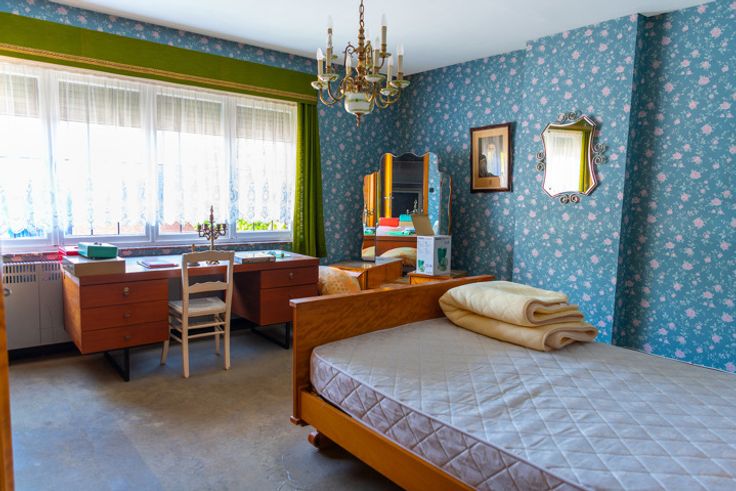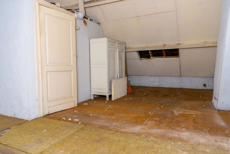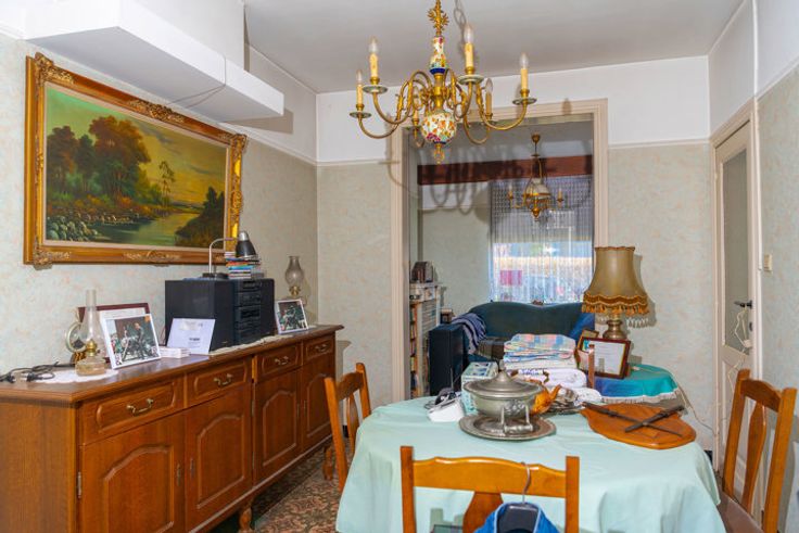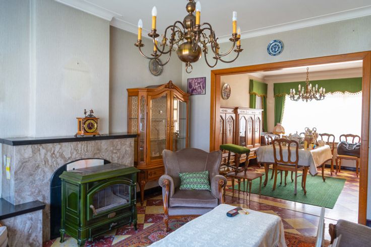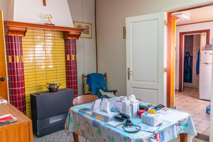 Schommen 4: Authenkieke woning bouwjaar 1933 met vernieuwd dak, Inkom, living, keuken, badkamer. verdieping met 2 slaapkamers en in te richten zolder. Inclusief vele originele elementen. EPC F, 752 kWh/(m2 jaar).