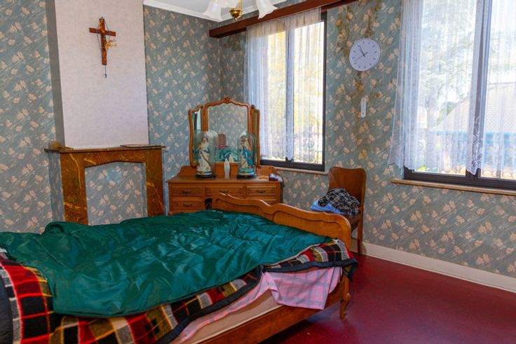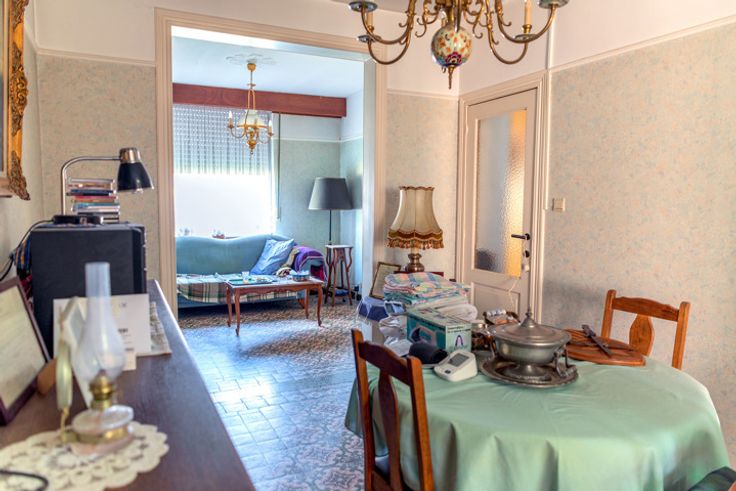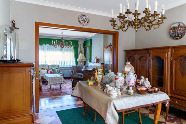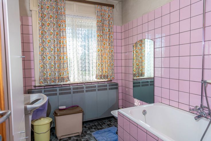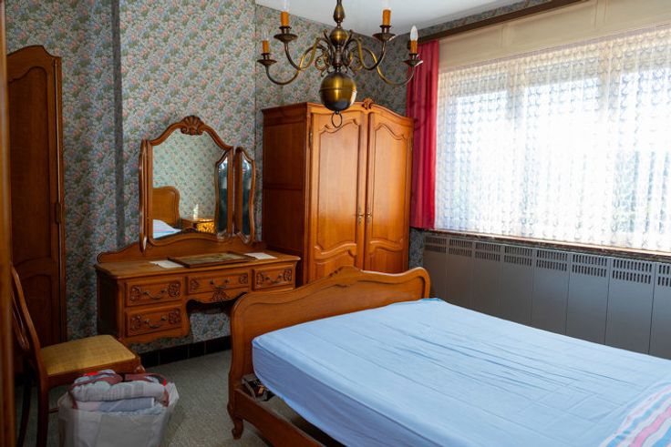 Schommen 6: degelijk gebouwd in 1957 met betonnen vloeren. Inkom, tweedelige living, keuken, veranda en toilet. Verdieping met 2 slaapkamers en badkamer. EPC F, 895 kWh/(M2 jaar),unieke code 20240606-0003274000-RES-1.