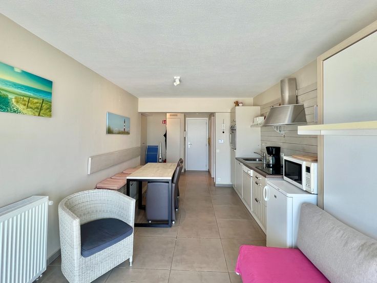 Deze verzorgde studio bevindt zich in Residentie Royal Beach, op de 6e verdieping, ter hoogte van het sportstrand. Het schuifraam over de volledige breedte van de studio biedt toegang tot het terras en zorgt voor een overvloed aan licht.