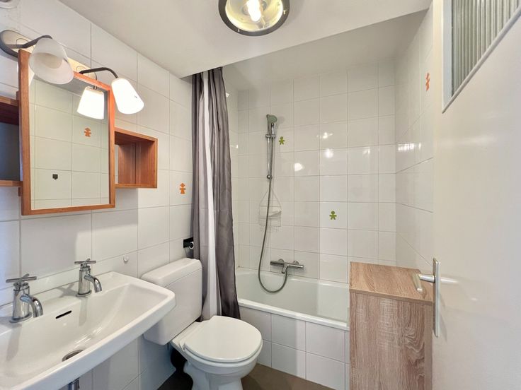 De studio is praktisch ingericht met een comfortabele open keuken, voldoende ingebouwde kasten en een ruime badkamer met ligbad, wastafel en toilet. Het uitklapbare bed biedt slaapruimte voor twee personen.