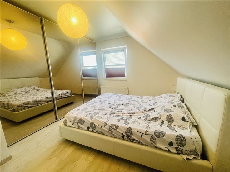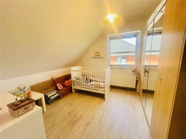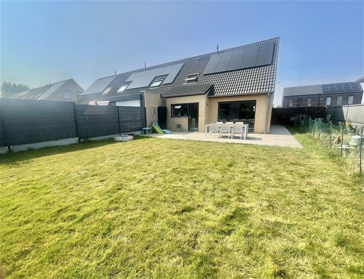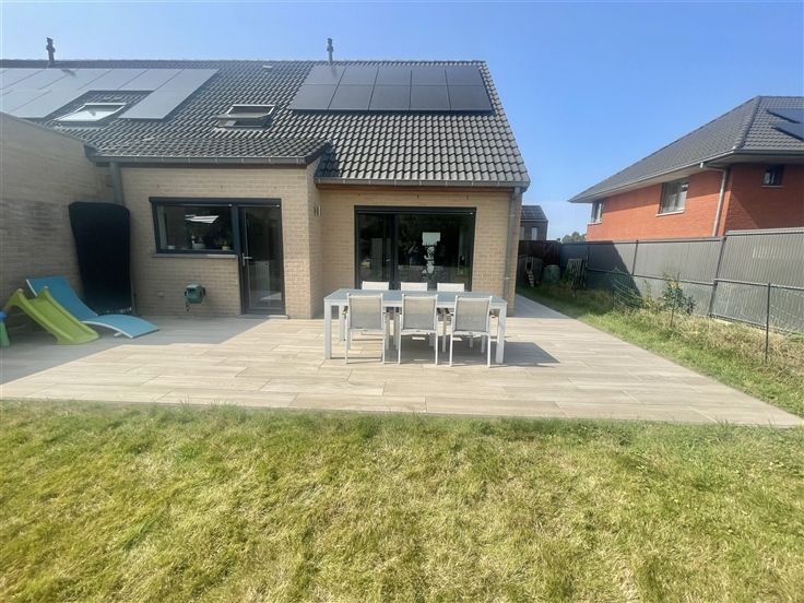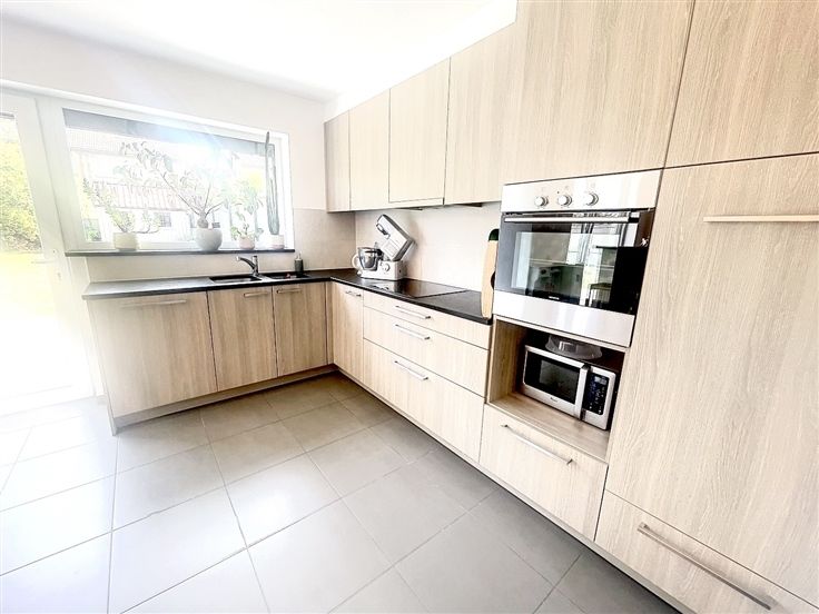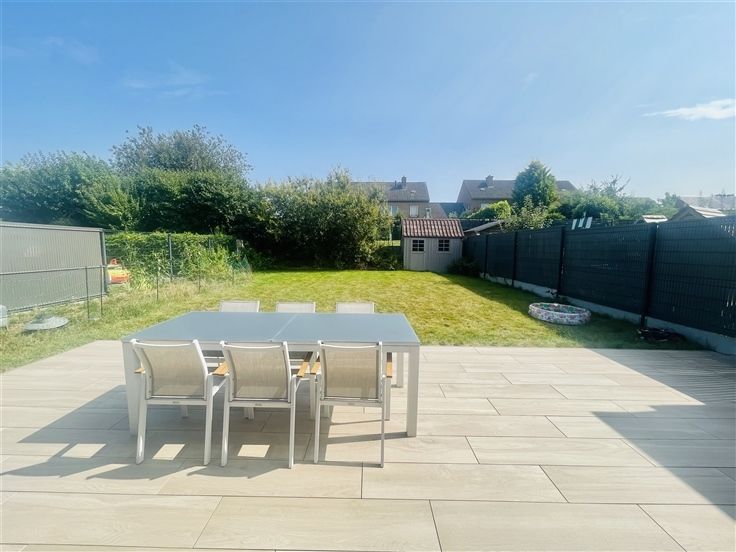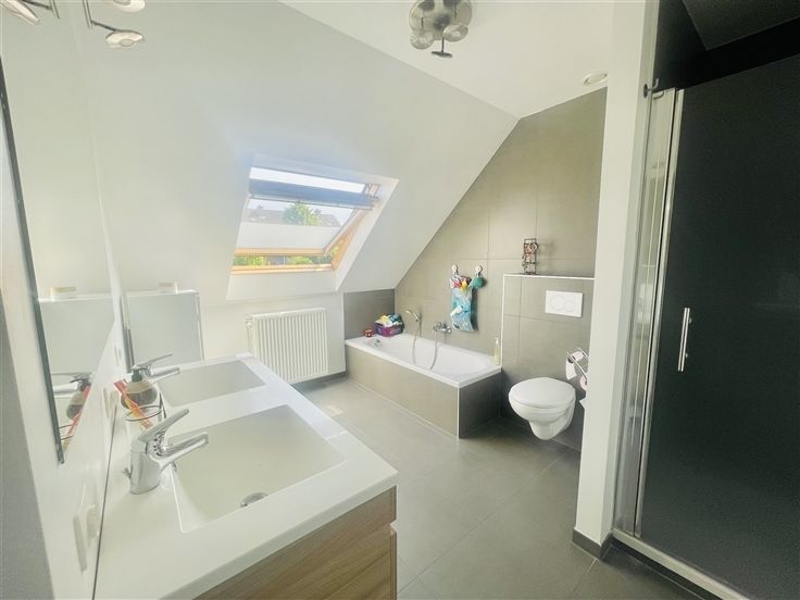 Sorry er is geen nederlandse vertaling beschikbaar. Charmante maison de 2013 érigée sur un terrain de 432m2 dans un clos résidentiel très prisé. La hall du rez-de-chaussée dessert une pièce de vie salon, salle à manger cuisine en L. La cuisine ouverte est entièrement équipée et donne un accès direct au garage. L'ensemble des pièces de vie ultra lumineuses sont toutes ouvertes sur le jardin. WC séparé, coin buanderie, garage avec porte sectionnelle et borne de recharge pour voiture électrique. A l'étage vous retrouverez 3 belles chambres, une salle de bain très confortable : baignoire, douche, double vasque. Le grenier permet d'avoir un grand espace de rangement supplémentaire. Le jardin idéalement exposé sud est est entièrement clôturé, équipée d'une grande terrasse et d'un chalet en bois. A l'extérieur, parking privatif 3 voitures en plus du garage. Cette maison vous offre tout le confort : chauffage central au gaz, châssis double vitrage en PVC et screen solaires, citerne d'eau de pluie, 10 panneaux photovoltaïques, electricité conforme, RC réduit de 745€, PEB B. Vous posez vos meubles dans un top secteur, au calme, proche des commodités. A visiter sans tarder !