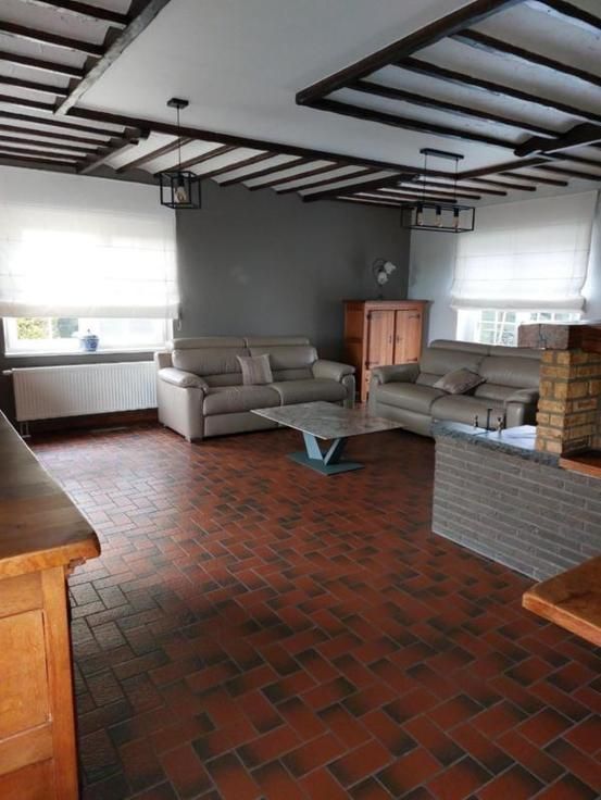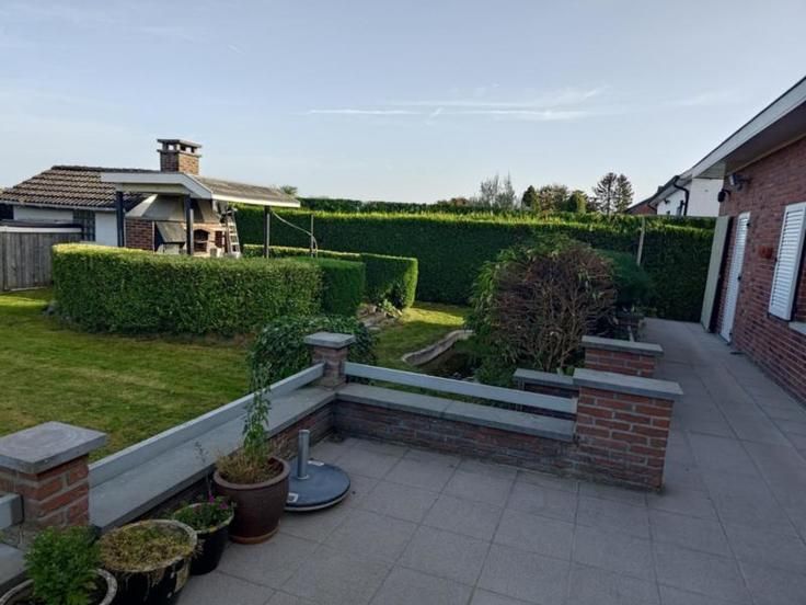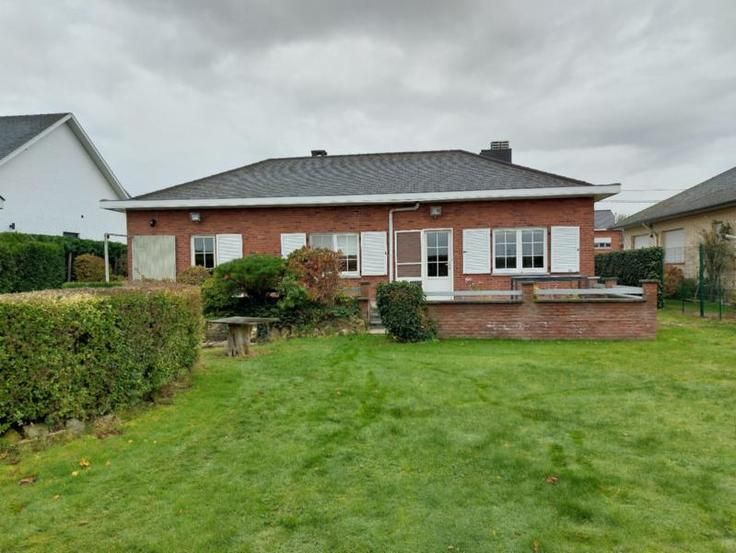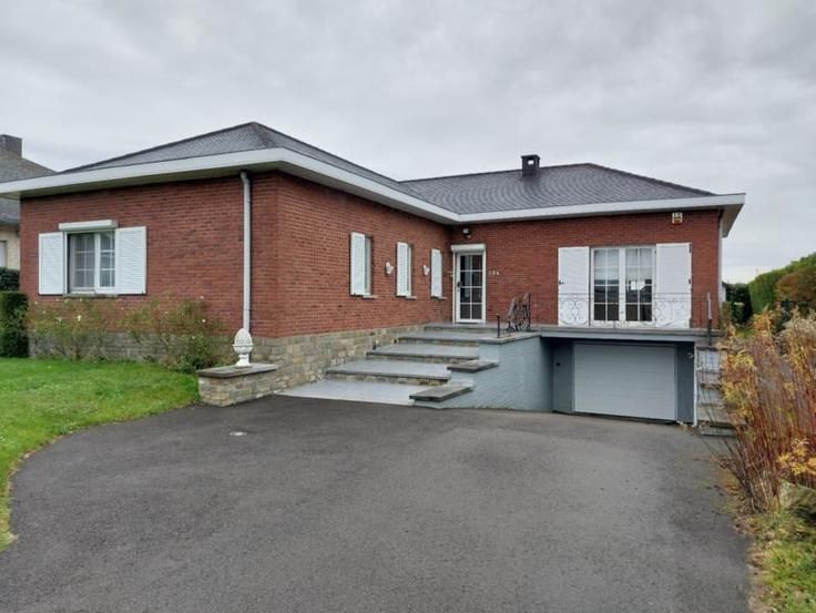 Ce magnifique bungalow 4 façades avec jardin bien aménagé, coin barbecue, grande terrasse, garage spacieux offrant de nombreux espaces de rangement est situé chaussée de Tongres 324 à Juprelle. Il dispose d'un cadre de vie paisible, entouré de verdure tout en restant à proximité des commodités essentielles, des écoles, des commerces et des transports. Ce bien se compose comme suit ; au sous-sol: un hall, une chaufferie, une cave avec boiler et chaudière, trois caves dont une donnant accès à deux vides ventilés en enfilade, un garage en L avec volet sectoriel (donnant accès à une fosse mécanique, comprenant un atelier et disposant des raccordements pour machines à laver); au rez-de-chaussée : un vaste hall d'entrée, un séjour lumineux (en L) comprenant lesalon équipé d'un feu ouvert et la salle à manger, une cuisine équipée, un WC indépendant, un hall de nuit desservant trois chambres, une salle de douche (avec douche, évier et WC), une terrasse, un jardin équipé d'un barbecue, d'un abri de jardin, d'un abri à bois et d'un étang ; sous toiture: un grenier accessible par une trappe. Le bien est équipé de châssis double vitrage en PVC, du chauffage central au mazout (à l'époque à air pulsé mais remplacé par des radiateurs, la citerne a une contenance de 2200 litres) et d'un adoucisseur d'eau. Il est raccordé à l'égout. Possibilité d'acquérir également tout ou partie du mobilier (stores bateau, canapé, bureau, ...) à définir avec la propriétaire.