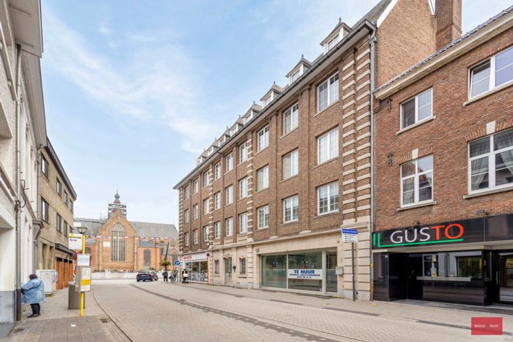 Sfeervol ruim en licht dakappartement met een prachtig uitzicht over de markt. Het appartement is te bereiken via de lift in de gemeenschappelijke inkom. Het appartement bestaat uit een inkomhal, een aangename leefruimte op parketvloer met visgraatmotief. Vervolgens is er een uitgeruste keuken, badkamer met bad alsook twee slaapkamers op parket. Tenslotte is er ook een terras en een kelderberging aanwezig. Troeven: - Centrale ligging nabij winkels, horeca en openbaar vervoer. - Prachtig uitzicht - Lift
