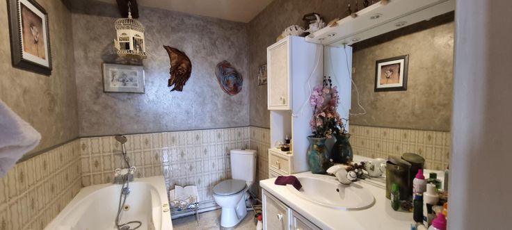 Au 1 er étage : palier desservant 4 chambres, 1 salle d'eau, 1 salle de bain avec wc, débarras.