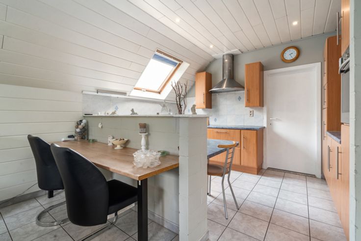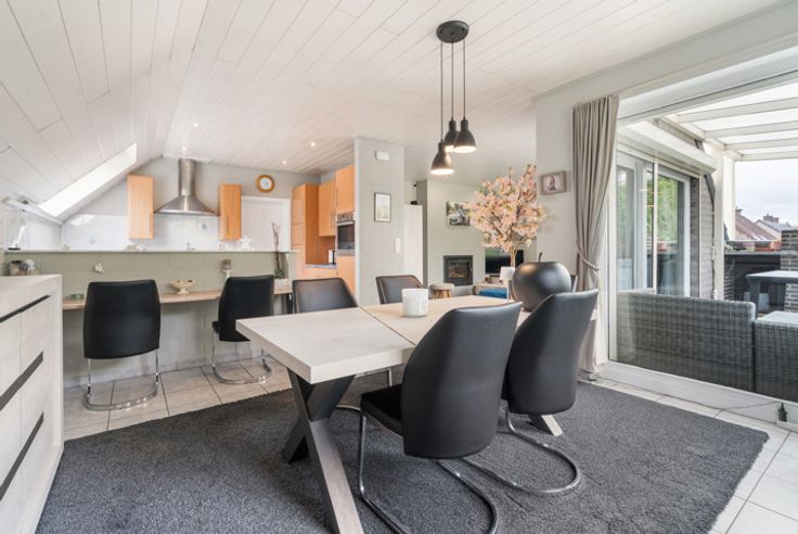 Bent u op zoek naar een locatie waar u uw handelszaak kunt combineren met wonen? Een plek met uitstekende zichtbaarheid en voldoende parkeergelegenheid? Dan is deze veelzijdige woning precies wat u zoekt! Deze open bebouwing beschikt over een aparte ingang voor het handelsgedeelte, dat momenteel is ingericht als een schoonheidsinstituut. Hier vindt u een stijlvolle open ruimte met grote vitrines, een behandelkamer met uitzicht op de tuin, een saunakamer, een bureel en een praktische keukenruimte. Daarnaast is er een apart toilet. Een extra pluspunt zijn de verharde parkeerplaatsen direct voor het pand, ideaal voor uw klanten. De woonruimte betreedt u via een zij-ingang met een inkomhal en een handige bergruimte/vestiaire. Op de eerste verdieping vindt u een gezellige leefruimte met een sfeervolle houtcassette en grote raampartijen die zorgen voor veel lichtinval. Via het schuifraam heeft u toegang tot een ruim terras. De volledig ingerichte keuken is voorzien van moderne toestellen en grenst aan een berging. Daarnaast is er een vide en twee slaapkamers, waarvan de hoofdslaapkamer is uitgerust met een eigen lavabo. De badkamer beschikt over een ligbad, dubbel lavabomeubel, douche en toilet. Via een vaste trap bereikt u de zolderverdieping, waar zich nog twee extra kamers bevinden, perfect voor gebruik als slaapkamers of hobbyruimtes. Eén van deze kamers is voorzien van praktische ingemaakte kasten. Er is een grote garage met plaats voor een wagen, fietsen, tuinmateriaal, .
