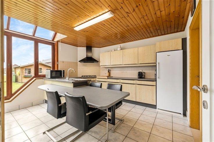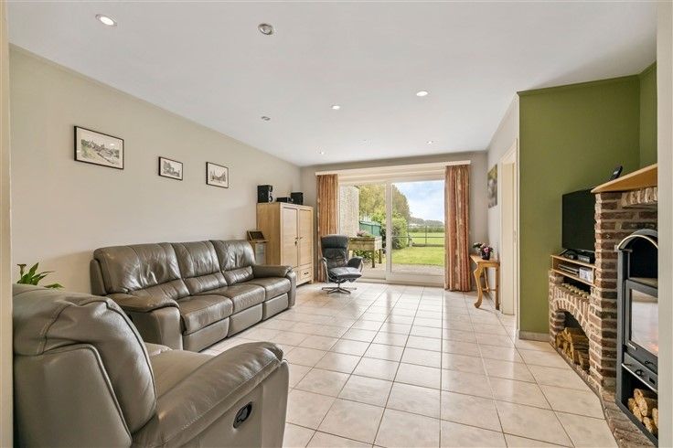 INDELING: Gelijkvloers: Riante inkomhal met gastentoilet; Ruime woonkamer met veel lichtinval en zicht op de tuin/achtergelegen landschap; Comfortabele leefkeuken voorzien van alle hedendaagse comfort; Aansluitende berging met ingemaakte kasten; Garage met toegang tot tuin en extra opbergruimte via mezzanine zolder; Tuin met aangelegd terras en een panoramisch uitzicht.