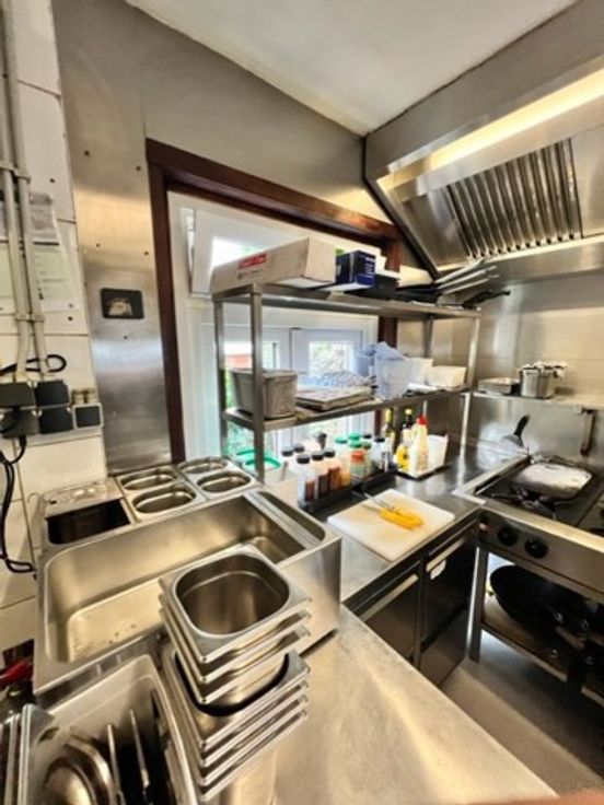 Het pand is momenteel ingericht als een brasserie en beschikt over een volledig uitgeruste professionele keuken. Alle apparaten en uitrusting in de keuken zijn van topkwaliteit en voldoen aan de hoogste normen voor de horeca. Dit biedt de nieuwe eigenaar de mogelijkheid om direct aan de slag te gaan en de brasserie voort te zetten zonder grote investeringen in de keukeninfrastructuur.