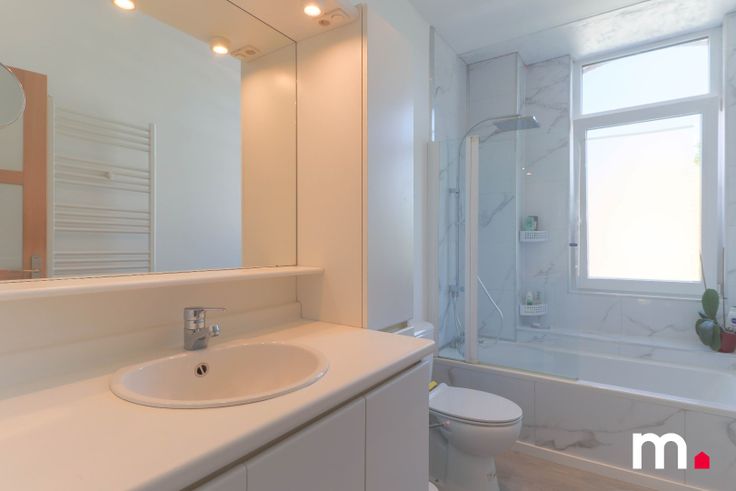 Eerste verdieping: Hier vind je twee ruime slaapkamers en een volledig gerenoveerde badkamer, uitgerust met een bad/douchecombinatie, lavabo met meubel en spiegel, een tweede toilet en ventilatiesysteem. De woning is voorzien van centrale verwarming op gas.