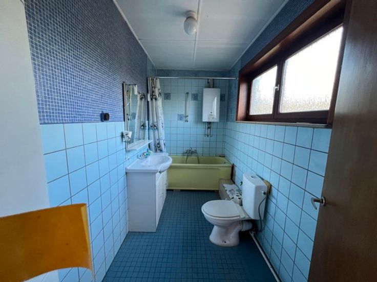 A l'étage, 3 belles chambres, une salle de bains. caves, grenier. On peut l'habiter de suite. Très belle opportunité! visites et infos: 0497/720702