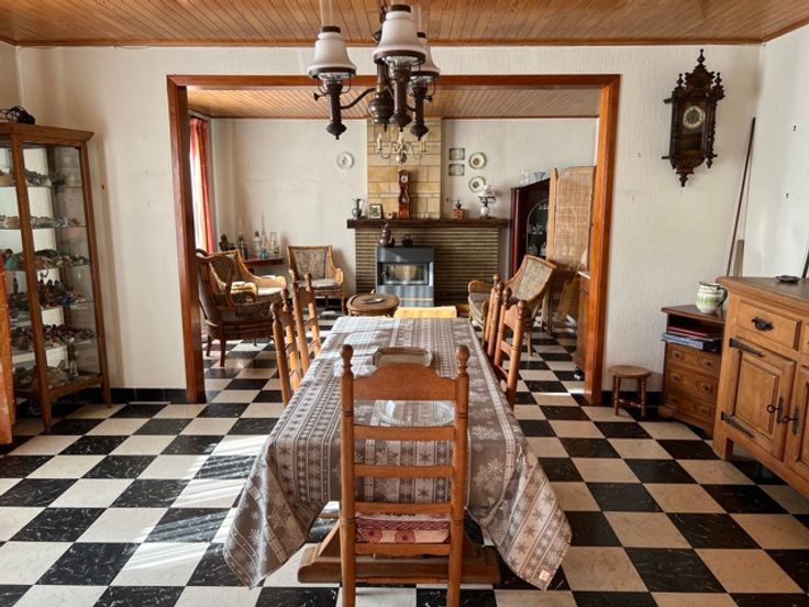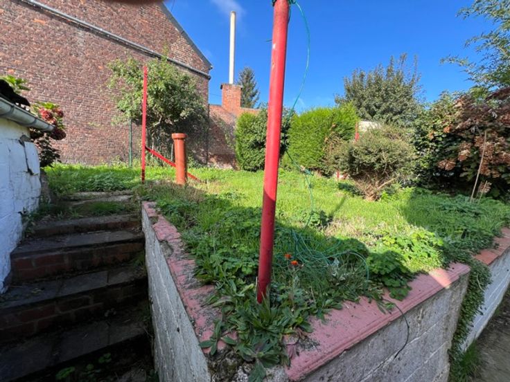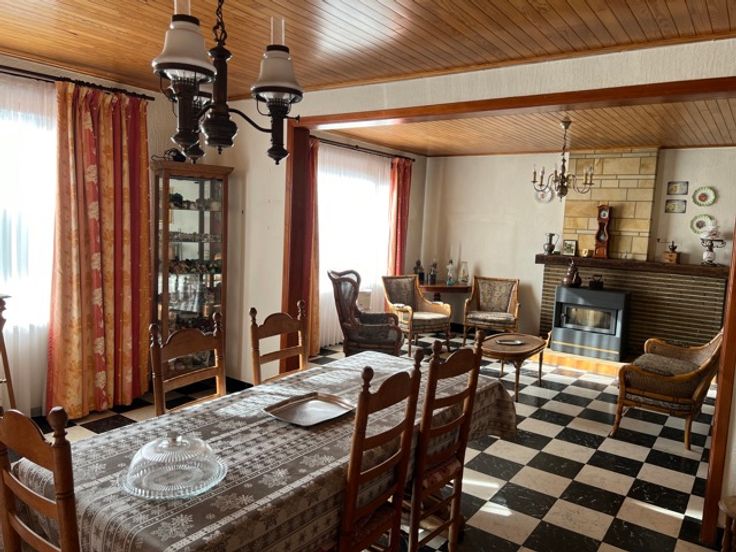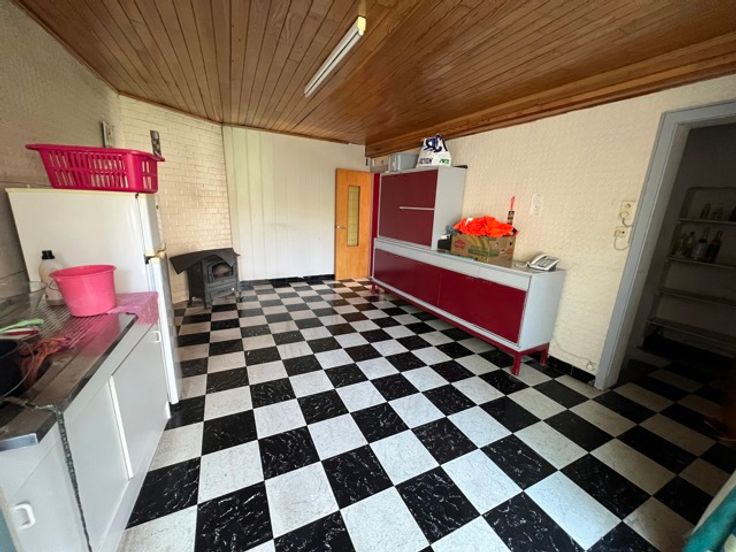 WASMES, bonne maison a rafraichir comprenant un hall d'entrée, un très grand living, une cuisine a rénover, une cour avec jardin, remises et passage latéral.