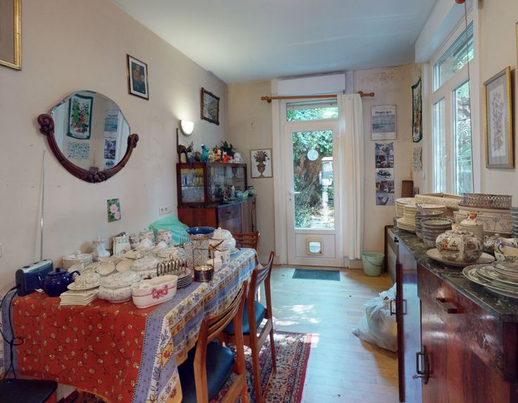 SCHAERBEEK - Spacieuse maison bi-familiale de +/- 384m² au total + agréables terrasse et jardin, située dans un quartier résidentiel entre les places Dailly et Meiser - À rénover entièrement - Elle se compose d'un hall d'entrée desservant 3 pièces en enfilade (17m²-16m²-15m²), WC séparé et cuisine donnant accès à la terrasse de +/- 19m² et au jardin de +/- 67m² orientés SUD-EST - Au 1er étage : 2 chambres (18m²-16m²), bureau de +/- 15m², cuisine, salle de bain et WC séparé - Au 2e étage : chambre de +/- 26m², grenier de +/- 35m² avec mezzanine de +/- 30m² - Caves de +/- 83m² (accessibles aussi par le jardin) - RU : 2 logements reconnus - Double vitrage PVC et simple bois - Convecteurs au gaz - PEB G - Libre à l'acte - VISITE VIRTUELLE : https://my.matterport.com/show/?m=kzb9HFQAcgA - Pour plus d'informations et visites, contactez-nous au 02/343.46.95 ou info@immobilieregeorges.be