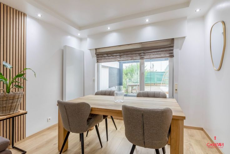 Deze mooi gerenoveerde woning is gelegen in een rustige deelgemeente van Gent, ideaal voor jonge mensen die op zoek zijn naar hun eerste eigen betaalbare thuis. De woning is gunstig gelegen aan het nieuwe park en de fietssnelweg Gertrudispad waarlangs je zeer snel en vlot naar Gent kan fietsen. De woning werd binnenin volledig gerenoveerd, je komt binnen via de inkomhal die uitgeeft op de keuken en de leefruimte. Achteraan werd een mooie tuinkamer gerealiseerd en een ruime tuinberging. Op het eerste verdiep zijn er 3 kamers en een badkamer, op de gang is er plaats voor een wasmachine. Wil je graag deze woning als eerste bezoeken, neem dan contact op via mail steven@convas.be of tel 09 278 88 88     Renovatieplicht: nee