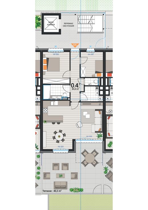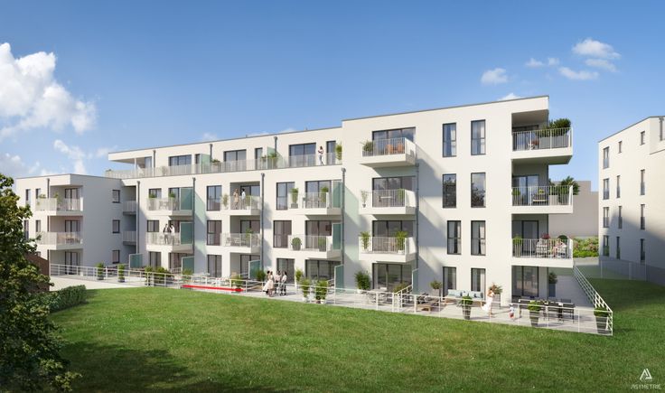Hochwertig ausgestattete Erdgeschossneubauwohnung mit großer Sonnenterrasse (ca. 40 m²) gelegen in der neuen Residenz „Die BERGGÄRTEN – PHASE B“ in Eupen, Helene-Frank-Weg 3. Diese neue, Wohnung befindet sich im Erdgeschoss eines modernen Neubaus und bietet auf einer Bruttowohnfläche von ca. 85 m² folgende Aufteilung: Eingangsdiele, 2 Schlafzimmer, Badezimmer mit begehbare Dusche, Abstell-Technikraum, helles Wohn-Esszimmer mit voll ausgestatteter Kücheninsel sowie ein separates WC.