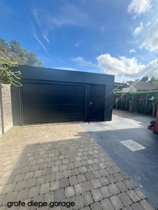 Grote garage met elektrische sectionele poort 3m en aparte deur, voorzien van 380V, ideaal voor hobby ‘s.of kleine zelfstandigen