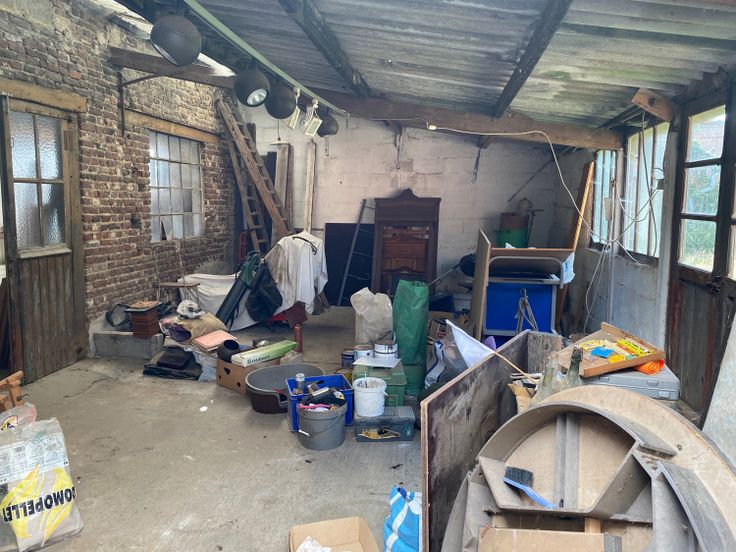 Deze centraal gelegen woning is een ideaal renovatieproject. De woning heeft heel wat vierkante meter bewoonbare oppervlakte, een grote garage en een ruim atelier. Het perceel is 1.521 m² groot en heeft een straatbreedte van 14 m. (De aanpalende woning kan ook worden bijgekocht en is 5 m. breed). De woningen moeten een totaalrenovatie ondergaan of kunnen dienen als projectgrond. Indeling gelijkvloers: inkom, voorplaats, woonkamer, keuken, achterplaats, veranda, , badkamer, toilet en tuinbergingen. Op de verdieping bevinden zich 3 slaapkamers. Grote garage met verdieping en een loods.
