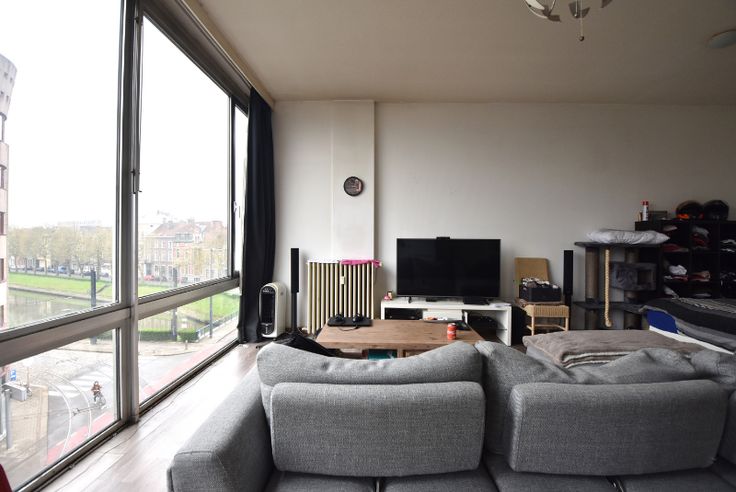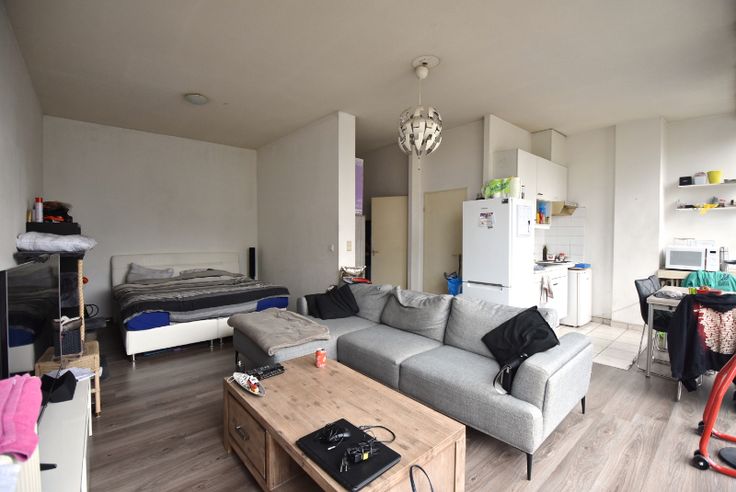 Lichtrijke leefruimte met zicht op de Coupure. Slaaphoek. Keukentje met frigo. Badkamer met bad/douche. Berging met aansluiting voor wasmachine. Afzonderlijk toilet.