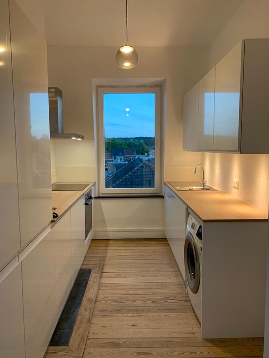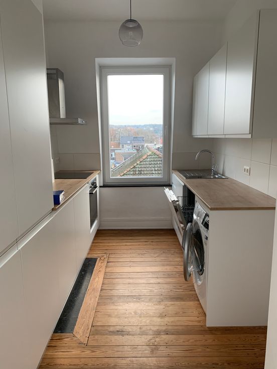 Très Lumineux. Double vitrage neuf, chaudière à gaz à condensation (thermostat, sonde extérieure, vannes thermostatiques), parquets. Luminaires led et tringles placés. Installation fibre optique Proximus et Voo.