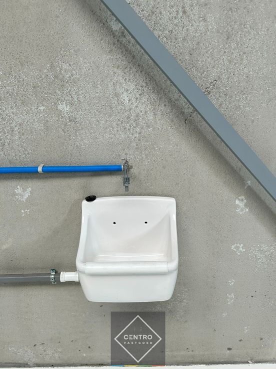 - gepolierde en gewapende betonvloer (15cm), gepolijst afgewerkt met kwarts en in vakken gezaagd om krimpscheuren tot een minimum te herleiden.