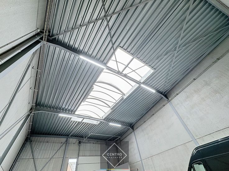 - stalen constructie, afgewerkt met lasprimer en all meta coating. Plaatsen van zonnepanelen op het dak is mogelijk volgens de stabiliteitsberekening!!