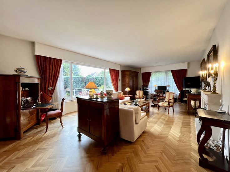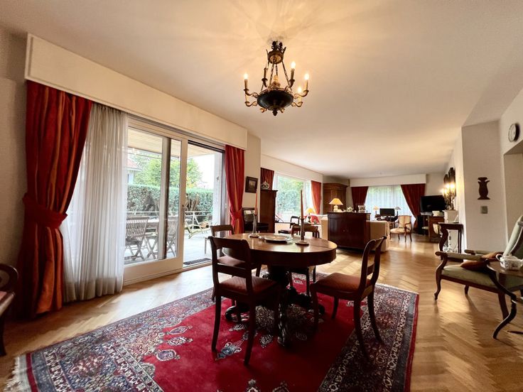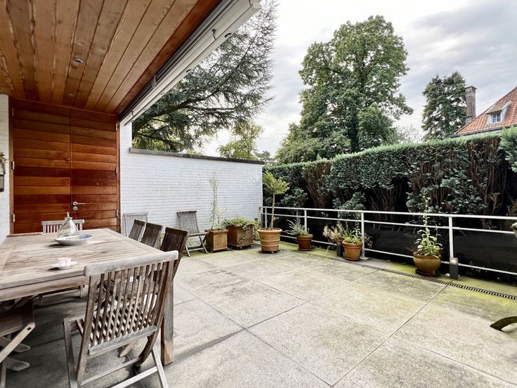 Dit unieke appartement ligt op de begane grond van een luxe gebouw op een zeer gewilde locatie in Ukkel, met het Fort-Jaco op loopafstand. Het profiteert van alle faciliteiten in een groene omgeving. Met een oppervlakte van 154 m² bestaat het uit een inkomhal, een vestiaire en een gastentoilet, een ingerichte keuken, een ruime woonkamer (met open haard) die toegang geeft tot het zuidwestelijke terras (gedeeltelijk overdekt) van 70 m². Verder een nachthal en twee slaapkamers met elk een eigen badkamer (met wc). De flat heeft ook een kelder en een parkeerplaats in het gebouw (€25.000 extra). EPC D. Meer huizen ? www.agencewashington.be Gelijkvloers: Slaapkamer: 13 m², Slaapkamer: 18 m², 1 Keuken, Inkomhal: 8 m², 2 Badkamer(s), Woonkamer: 55 m², Kleedkamer . Verschillende kamers: 1 Terras, 1 Garage(s), Kelder, 3 Toilet . Uitrusting van keuken: Keuken meubelen, Koelkast, Diepvrieskast, Gas fornuis, Oven, Vaatwasmachine, Wasmachine, Wasemkap . Elektrische uitrusting: Alarm, Tuin verlichting, Elektrische garagedeur, Elektrische blinden . :, : 179 Kwh, : 48 Kg Co2m²an, EPC certificaat nb., Total énergie primaire: 27 kwh/an . Andere uitrusting: Lift, Conciërge/huisbewaarder, Gepantserde deur, Dubbele beglazing, Schoorsteen, Blinden . Vensters: Hout . Grond: Gelamineerde bevloering