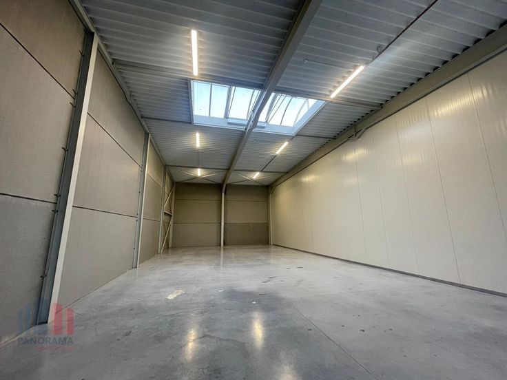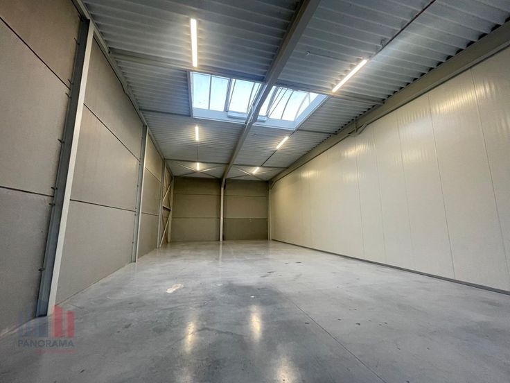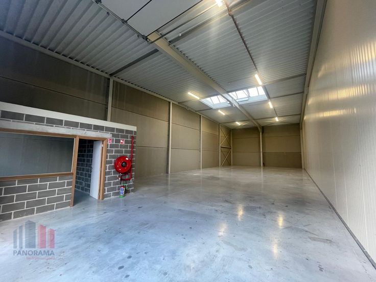 De magazijnruimte met een vrije hoogte van +/- 6 meter is opgebouwd uit een staalconstructie in combinatie met geïsoleerde betonpanelen en is toegankelijk via een automatische sectionale poort (4,50 m H x 4,20 m B) met afzonderlijke toegangsdeur. Daarnaast is de ruimte voorzien van een rookluik (brandklasse C), lichtstraat, polybetonvloer en aparte aansluitingen voor water, elektriciteit en afvoer.