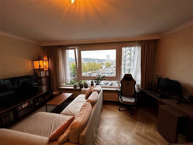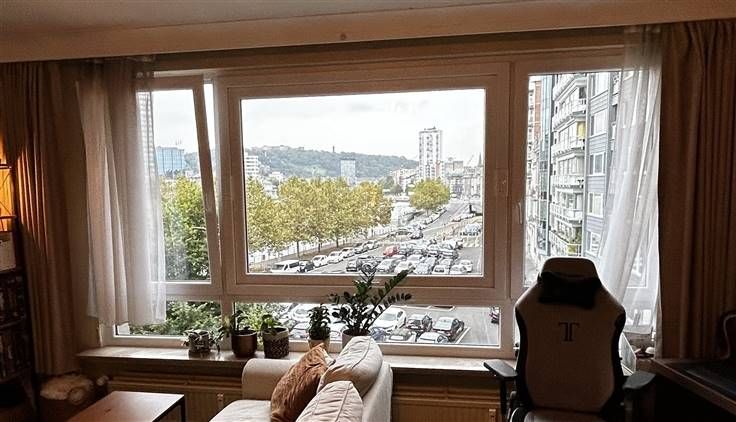 Sorry er is geen nederlandse vertaling beschikbaar. Bel appartement 2 chambres (90 m²) situé au 3ème étage de l'immeuble faisant le coin de l'esplanade du quai Churchill. Il comprend: hall d'entrée, living avec vue dégagée, cuisine équipée, hall de nuit, 2 chambres (16 et 10 m²), wc et salle de douche. une cave. Charges: 150 euros/mois (communs, chauffage et eau froide). Libre début novembre 2024.