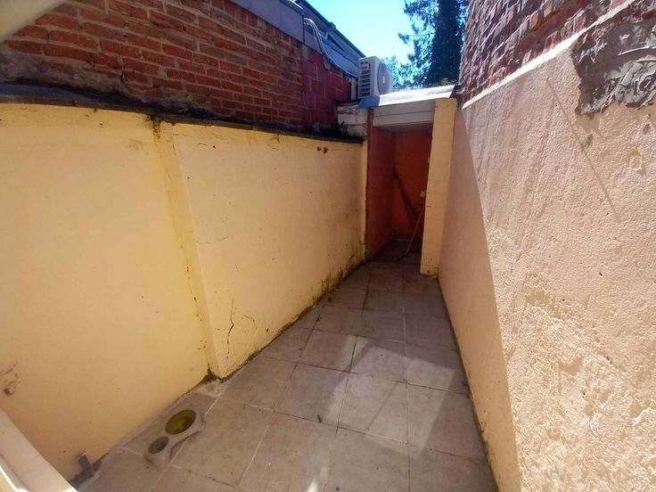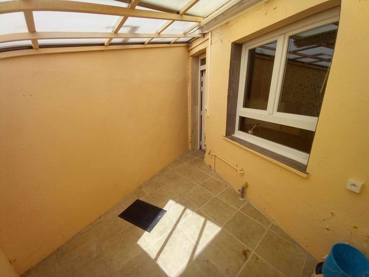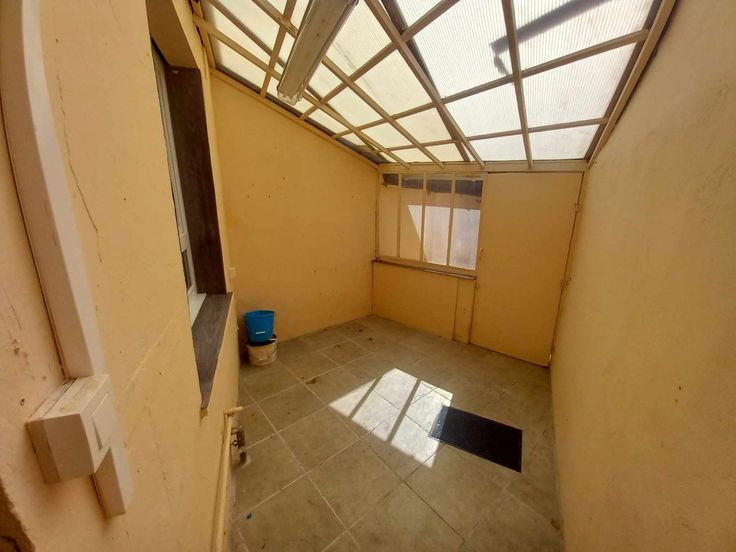 La maison se compose au rez de chaussée d'un living, d'une cuisine semi équipée, une buanderie et une petite cour.