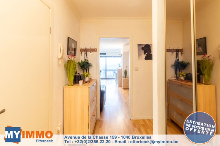 Kapelleveld/UCL - MYIMMO Etterbeek heeft een exclusief aanbod voor deze prachtige doorloopflat op de 9e/12e verdieping, die uitzonderlijk licht is en als volgt is samengesteld: Inkomhal met bergruimte die toegang geeft tot een grote woonkamer van +-32m2 en een ingerichte keuken van +-8m2, zuidwestelijk georiënteerd terras van +- 8,5m2 dat een bucolisch uitzicht biedt op de beroemde hoeve Hof-Ter-Musschen. De nachthal leidt naar een mooie slaapkamer van +- 12,5m2 met een aangrenzend terras van +-4m2, doucheruimte met inloopdouche, wastafelmeubel en hangend toilet. Het condominium heeft een overdekt zwembad, een tennisbaan buiten en een gemeenschappelijke wasruimte. Er is een garagebox te koop bij de flat (verplicht) voor €25.000. Volledig verkoopdossier en bezichtigingsafspraken per telefoon op 02/356.22.20 of per e-mail: etterbeek@myimmo.be. Meer huizen op www.myimmo.be. Deze advertentie vormt geen aanbod tot verkoop, maar een prijsvoorstel waarbij de eigenaar vrij is om elk aanbod, ongeacht de prijs, te accepteren of te weigeren.