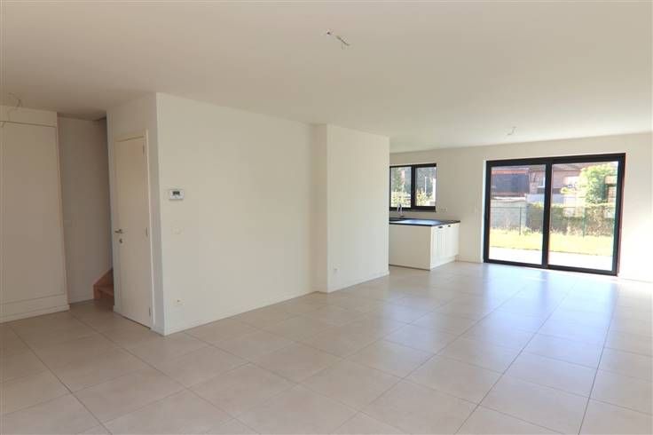 Op het gelijkvloers bevinden zich een inkomhal met apart toilet, leefruimte met open keuken en een aansluitende berging.
