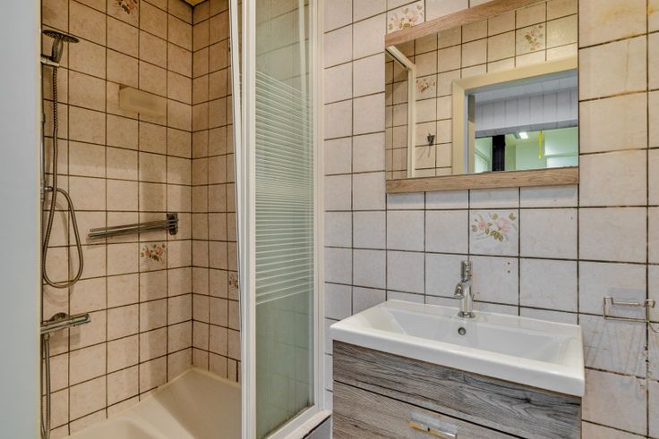 Aansluitend aan de keuken bevindt zich een veranda. Deze ruimte biedt een prachtig uitzicht over de tuin en de achterliggende weilanden, waardoor het een ideale plek is om te genieten van een kopje koffie in de ochtend. Op het gelijkvloers is tevens een praktische douchekamer aanwezig, uitgerust met een toilet en wastafel.