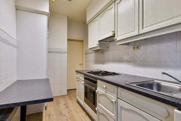 Bij binnenkomst via de inkomhal, betreed u de ruime en lichtrijke woonkamer. Deze sfeervolle ruimte is slim ingedeeld met een gezellige zithoek en een aangename eethoek, perfect voor familiebijeenkomsten en ontspanning. De aparte keuken is eenvoudig maar functioneel uitgerust met een oven, gasvuur, wastafel en voldoende opbergruimte.