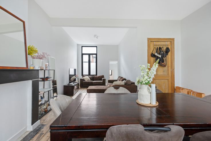 Op een steenworp van Park Spoor Noord alsook de toekomstige hippe Slachthuissite vinden we in een kleinschalig en statig gebouw dit prachtige ruime duplex appartement.  Al van bij de inkomhal van het gebouw word je omver geblazen door de prachtige mozaïek vloer , historische sierlijsten alsook prachtige trap.  Het appartement bevindt zich op de tweede en derde verdieping en werd gerenoveerd met oog voor detail. Je geniet een erg huislijk gevoel vanwege de prachtige gezandstraalde interne trap. De keuken geniet een hedendaagse vormgeving en is voorzien van alle toestellen. Deze ruimte werd voorzien van een nieuwe prachtige terrazzo bevloering , welke werd doorgetrokken in de badkamer. De badkamer beschikt over een ruime inloopdouche , dubbele lavabo met prachtige grote spiegel met ledverlichting alsook een hangtoilet.  De leefruimte en eetruimte beschikken over een authentieke en zeer charmante plancher vloer alsook een oude sierhaard. Vanuit de leefruimte geniet je een open zicht op twee gerestaureerde watertorens. Op de bovenste verdieping vinden we nog 2 riante slaapkamers. De masterbedroom werd voorzien van een nieuwe parketvloer en beschikt over een praktisch mezzanine gedeelte waar je je reiskoffers etc kan opbergen. De tweede (tevens ruime) slaapkamer is voorzien van de originele houten vloer. Leuke weetjes: De verlichting die je ziet is inbegrepen in de vraagprijs! (erg praktisch) Het appartement beschikt over een ruime kelderberging in het ... Renovatieplicht: nee