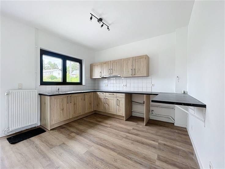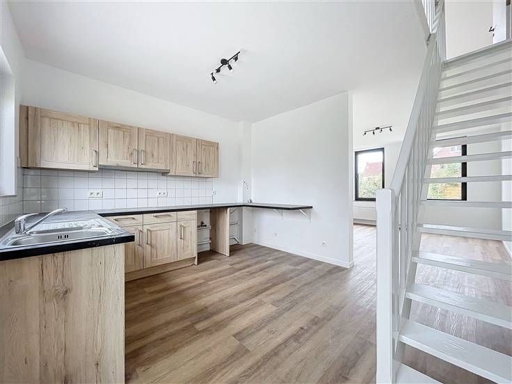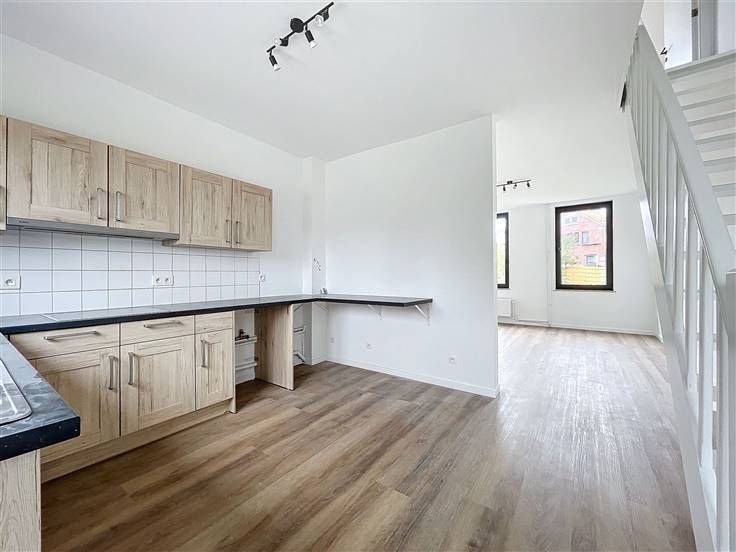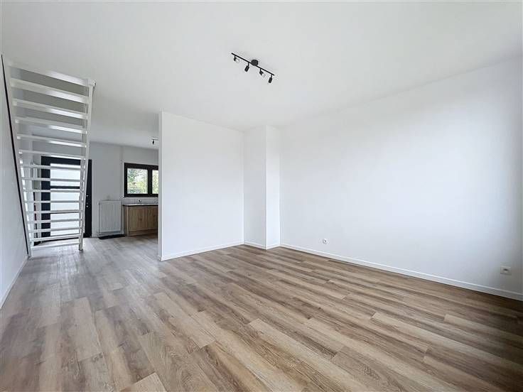 - Woonkamer van +/-34m² met semi-ingerichte keuken