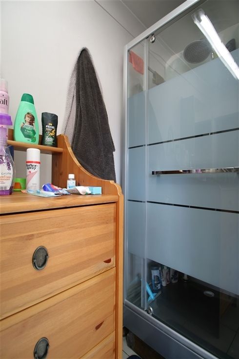 gelijkvloers: inkomhal, living, keuken, douchekamer met toilet, buitenberging;