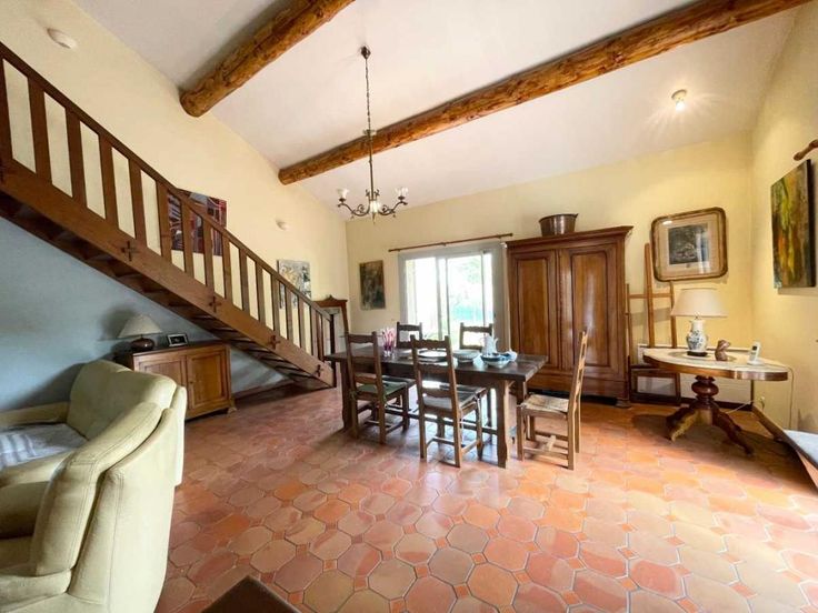 CHATEAUNEUF DE GADAGNE (dépt 84) : Cette maison de construction traditionnelle est bien située, au calme tout en étant très proche de toutes les commodités (écoles, commerces). Elle a été très bien entretenue et ne nécessite pas de gros travaux, juste un petit rafraichissement. Elle est fonctionnelle et agréable à vivre. La cuisine équipée s'ouvre sur une terrasse avec barbecue mais aussi sur la salle à manger, ce qui fait une pièce à vivre très conviviale et lumineuse grâce aux deux portes fenêtres du séjour. Le salon est dôté d'une cheminée avec insert. Côté nuit, on trouve trois chambres, une salle d'eau et un WC. Il sera très facile de récupérer de l'espace pour créer une deuxième salle d'eau/WC dans une des trois chambres. Un bel escalier en bois vous mènera à l'étage qui offre une quatrième chambre et une mezzanine qui surplombe le séjour. Pour compléter le tout, vous trouverez un garage de 24 m2 indépendant de la maison. Le terrain (920 m2) est clos et arboré notamment d'oliviers. Si vous le souhaitez, vous pourrez y implanter une piscine. Je vous invite à ne pas laisser passer cette belle opportunité. Je vous attends pour une visite rapidement !! Votre agent commercial 3G IMMO sur place EI - Corinne MICHAUD Inscrite au RSAC d'AVIGNON 504 511 247, Tel : 06 89 63 46 68, Site 3gimmo : https://archive.3gimmo.com/michaud Selon l'article L.561.5 du Code Monétaire et Financier, pour l'organisation de la visite, la présentation d'une pièce d'identité vous