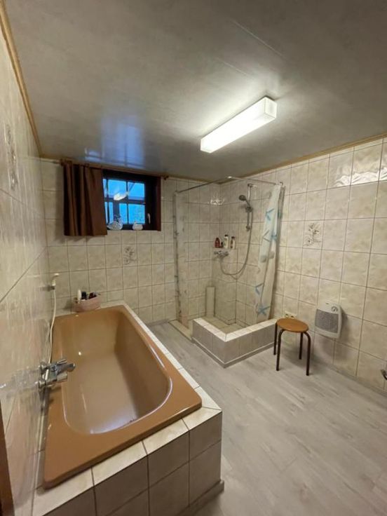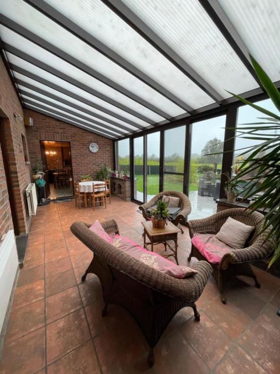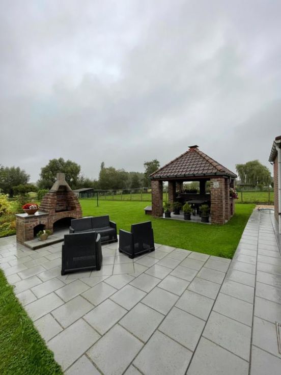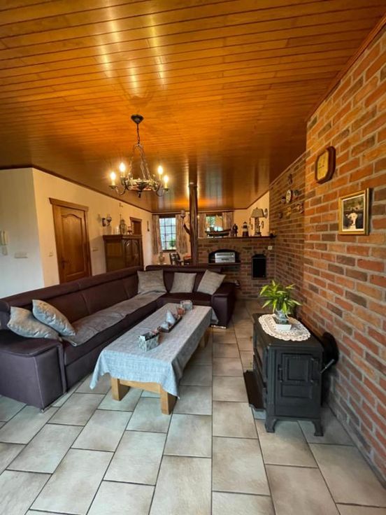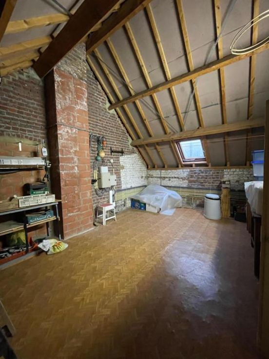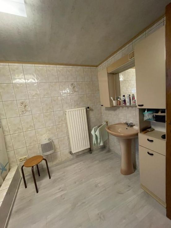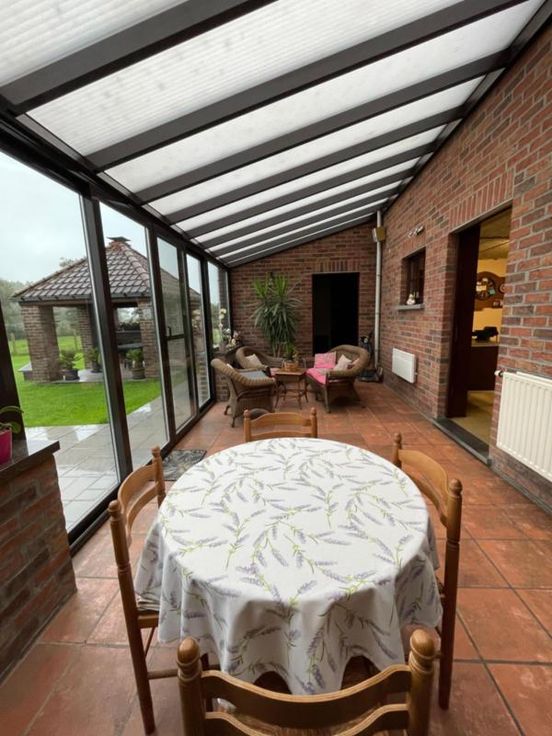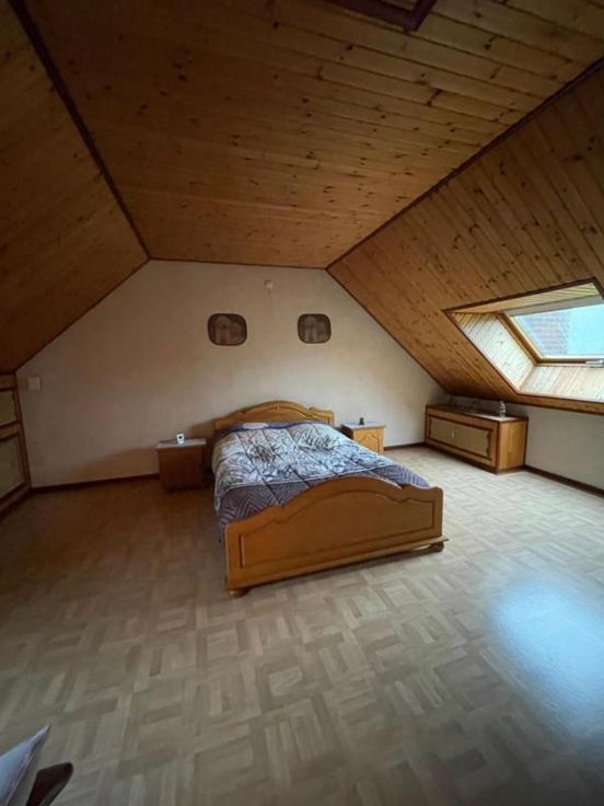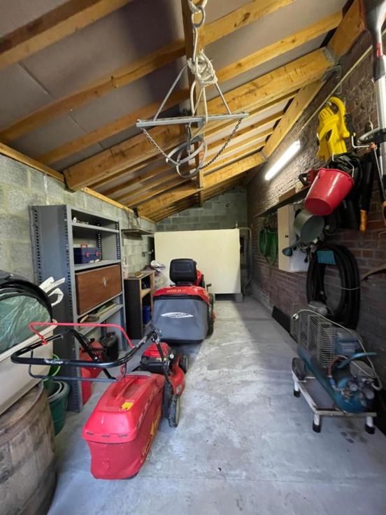 Magnifique villa 4 façades, avec garage (2 voitures), parking et beau jardin, point d’eau, en excellent état d’entretien. La maison se compose comme suit : Au sous-sol : bonne cave (sèche) Au rez-de-chaussée : hall d’entrée desservant un WC, une salle de bains (bain, douche, lavabo), une salle à manger, un salon (feu au bois), une cuisine ouverte équipée (frigo, double évier, taques électriques, hotte), une véranda, une buanderie (chaufferie), un garage (2 voitures – porte sectionnel) donnant accès au grenier. Au premier étage : hall de nuit desservant 3 chambres. Excellent état d’entretien. RC hyper bas. Electricité conforme. Alarme Double vitrage Bonne toiture – sous toiture Citerne d’eau de pluie Groupe hydrophore Raccordement à l’égout al (mazout) Citerne à mazout (- de 3.000L) Annexe Terrasse Magnifique jardin (BBQ, point d’eau) Renseignements généraux : SUP : 18a 60ca RC : 448€ PEB : F Contrôle de l’installation électrique : conforme Réduction des droits d’enregistrement et abattement possibles sous condition