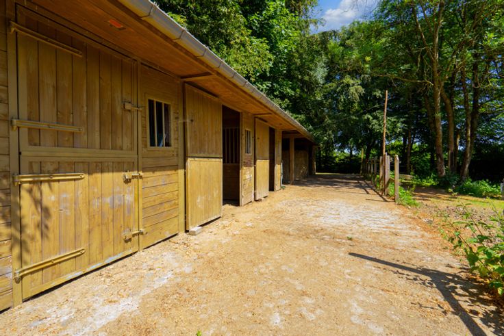 Magnifique terrain de ± 1 ha 28 a 44 ca comportant : - une zone constructible en front de rue ; - un barn en bois de 3 boxes avec salle de pansage, stockage, … - une ancienne carrière de 15 par 25 ; - des prairies.