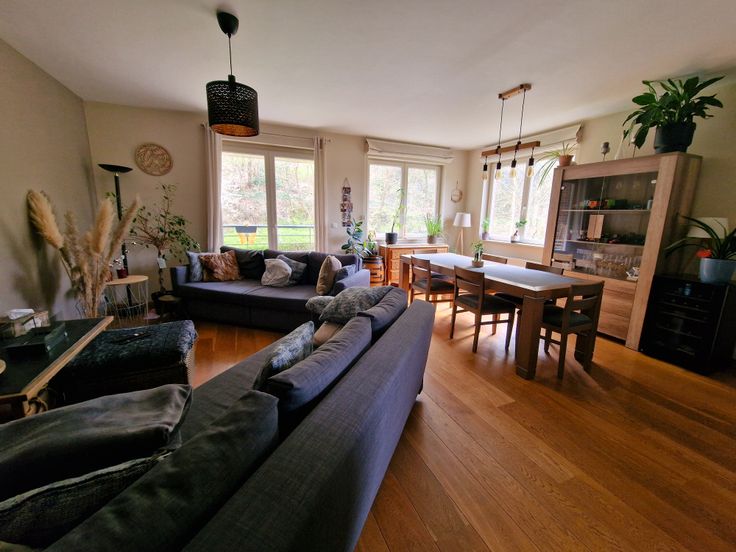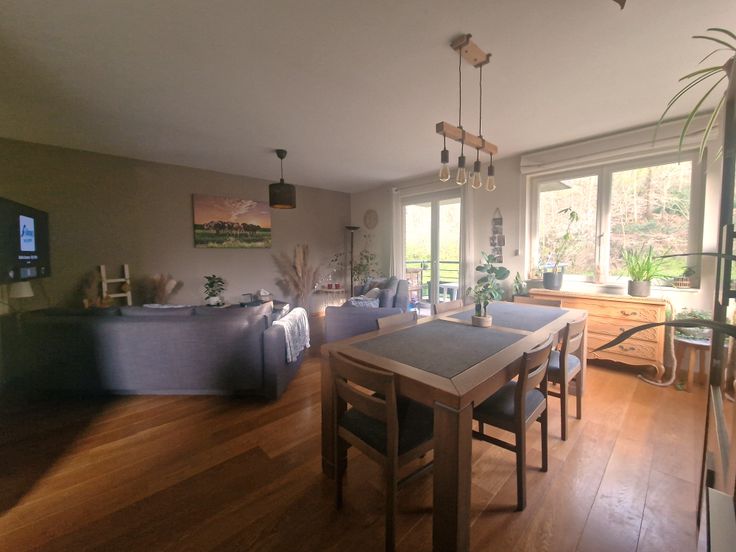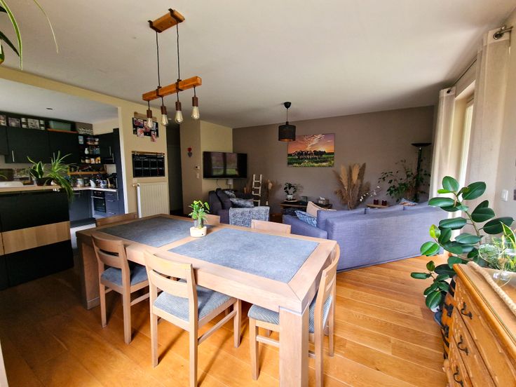 A proximité de toutes facilités (commerces, transports, autoroutes, écoles,...), il dispose de tout pour vous plaire : 3belles chambres, grand séjour lumineux, cuisine ouverte équipée, 2pièces d'eau, terrasse couverte bien orientée, garage, cave, adoucisseur d'eau, peb B (presque A) : chauffage gaz, DV pvc, beaux et bons matériaux de finition (plancher en chêne massif, porte blindée. Compteurs individuels. Charges mensuelles : provision de 150€