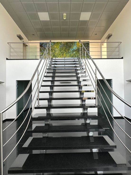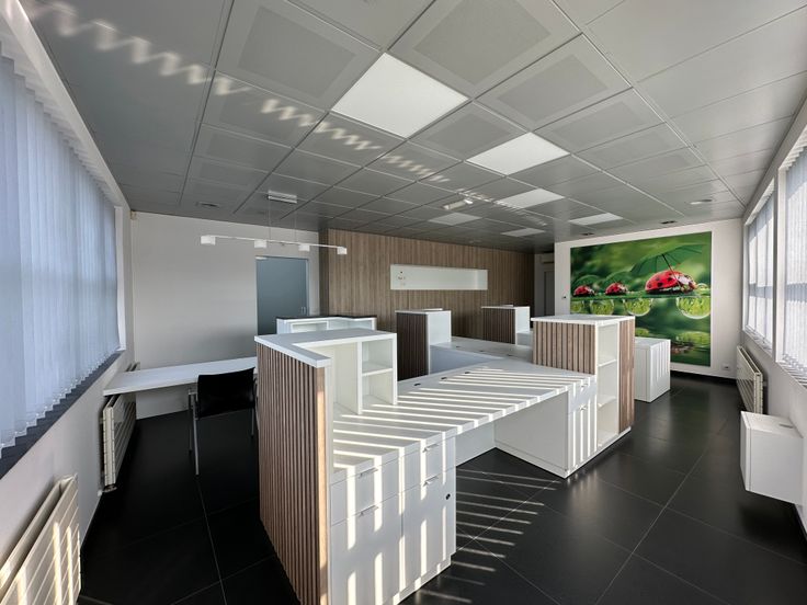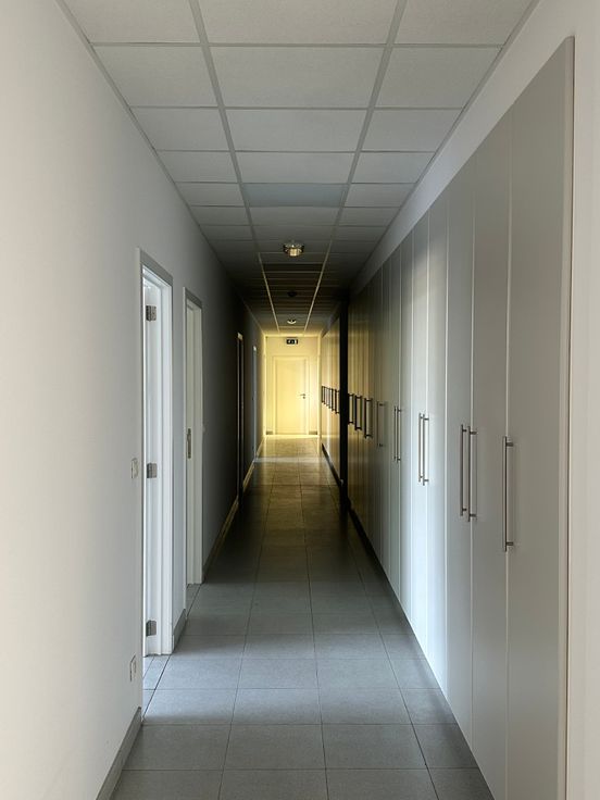 Het kantoor heeft een opp. van 588m2 verdeeld over 2 verdiepen (gelijkvloer: 173m2; 1ste verdiep: 415m2) uitgerust met o.a. een receptie/onthaal en vergaderzaal.