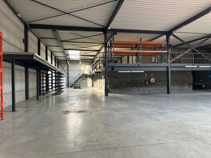 Het bedrijfspand heeft een capaciteit van 1.636m2 opslagruimte ( 1.393m2 vloeropp. en 243m2 mezannine). De opslagruimte geniet van een vrije hoogte van 6m met 3 automatische sectionale poorten.