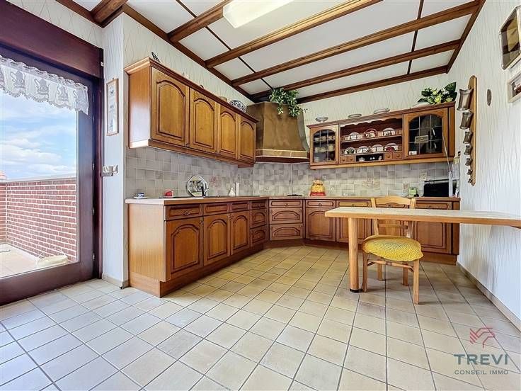 Sorry er is geen nederlandse vertaling beschikbaar. Située au centre ville, grande propriété bel étage de construction robuste offrant de beaux espaces de vie et tout un niveau particulièrement approprié pour l'activité professionnelle d'un artisan. La maison se compose au rez de chaussée d'un hall d'entrée de 10 m² sous magnifiques dalles de marbre vers les deux grands garages de 25 m² chacun et le grand espace de stockage de 55 m². Tous les garages proposent une porte sectionnelle motorisée. Grande buanderie de 10 m², chaufferie et toilette séparée. Accès au jardin (actuellement terrasse). A l'étage, via le bel escalier en marbre et fer forgé monumental, grand séjour de 45 m² sous magnifiques dalles de marbre et belle cheminée en pierre naturelle avec cassette à bois. Porte coulissante vers la terrasse et sa vue imprenable sur la campagne. Belle cuisine rustique séparée de 18 m². Hall de nuit de 15 m² vers les deux belles chambres de 15 et 14 m² et la salle de bain de 11 m² équipée d'une baignoire et d'une cabine de douche. Toilette séparée. A l'étage supérieur, grand grenier sur toute la longueur. CC gaz (nouvelle chaudière de 2022). Citerne d'eau de pluie. Double vitrage Méranti et volets. Fibre optique. Belles portes en chêne. Tente solaire. PEB C. Infos et visites au 02/355.50.55.