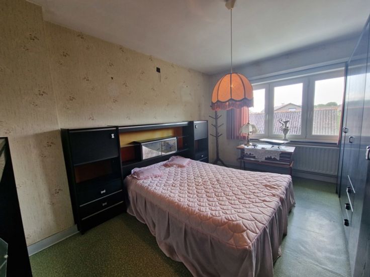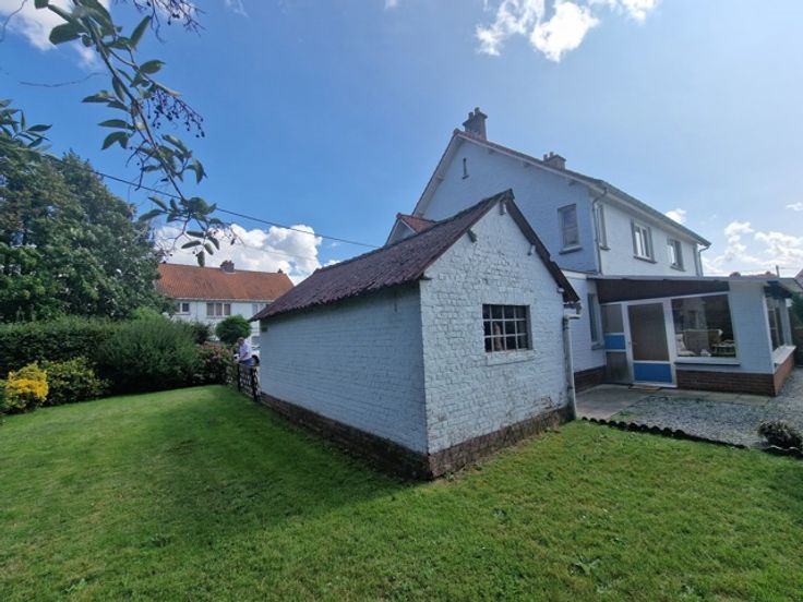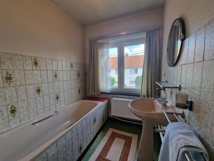 De woning bevindt zich op de hoek van de Jules Lowetlaan en de Bleysstraat. Deze woning betreft een halfopen bebouwing met westelijke tuin. We betreden de woning via de inkomhal. De hal heeft een mooie zwart wit dambord vloer. Rechts bevindt zich een gangetje met gastentoilet en toegang tot de keuken. De living is opgesplitst in een zithoek vooraan en eethoek achteraan. De eethoek heeft zicht op de tuin. Via de eethoek komen we in de leefkeuken. Deze leefkeuken heeft een mooie authentieke vloer en heeft een aparte ontbijthoek. Via de keuken hebben we toegang tot de kelder. Achteraan de woning is er een grote veranda. Deze veranda heeft een prachtig zicht op de westelijke tuin. In de tuin is er een tuinberging en een aparte garage. De eerste verdieping heeft 3 slaapkamers en een badkamer met een lavabo en bad. Er is toegang tot de nog in te richten zolder via een trapluik. Op de zolder kunnen nog 2 slaapkamers gemaakt worden. Gelegen in een rustige wijk. Vlakbij de oprit van de autostrade E40. Voordelen van deze mooie woning: -Grote solide woning met 3 slaapkamers, mogelijk 5 slaapkamers -Topligging -Grote tuin van 7 a 38 ca -Nieuwe PVC ramen P-score A G-score A Renovatieplicht