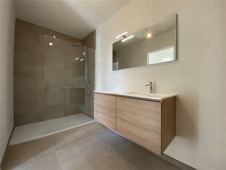 Gelegen in een éénrichtingsstraat vinden we dit uitstekend appartement dat deel uitmaakt van een kleinschalig nieuwbouwproject van 7 energiezuinige BEN-appartementen in het hartje van Sint-Gillis-Waas.  Het appartement heeft een optimaal ingerichte woonoppervlakte en wordt voorzien van alle hedendaags comfort waaronder vloerverwarming, individuele zonnepanelen, een ventilatiesysteem, aluminium ramen, enz...  Dit alles brengt het appartement onder een E-peil van 30, wat resulteert in een enorme energetische besparing. Het appartement is gelegen op de tweede verdieping aan de achterzijde en omvat een woonkamer met open keuken, aanpalend een zeer ruim en zuid gericht terras dat toegankelijk is via een groot schuifraam, een ruime slaapkamer, een ingerichte badkamer met dubbel lavabomeubel, spiegelkast en inloopdouche, een apart toilet met handenwasser en tot slot een berging/wasplaats. Bovendien is er een parkeerplaats inbegrepen. Het gebouw is voorzien van een lift, een vuilisberging en een luifel waaronder een fiets kan worden gestald. Bent u even enthousiast als ons over dit fantastische nieuwbouwappartement? Neem dan snel contact op en schrijf u in om het appartement te bezoeken op de reeds voorziene bezoekdagen!  Huurprijs + Kosten: €800 + €50 (per maand)