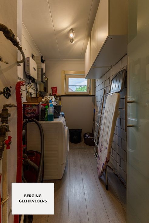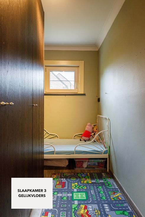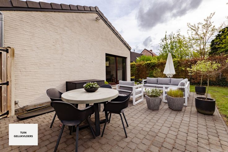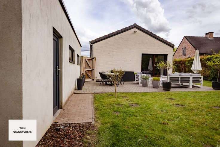 Indeling gelijkvloers: inkomhal, afzonderlijk gastentoilet, berging (aansluiting voor wasmachine & droogkast), woonkamer, open leefkeuken (dewelke hoogwaardig is afgewerkt & ingericht met alle toestellen), badkamer (ruime inloopdouche & dubbele lavabo), garage (elektronisch bedienbaar), 3 slaapkamers, terras & tuin (NW-oriëntatie).